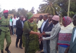 Mkurugenzi wa Halmashauri ya Mji Nanyamba Ndugu Adv, Oscar Ng'itu akisalimiana na Mkuu wa Mkoa wa Mtwara Mhe, Halima Dendegu wakati alipofanya ziara ya kukagua shughuli mbalimbali za Maendeleo le...