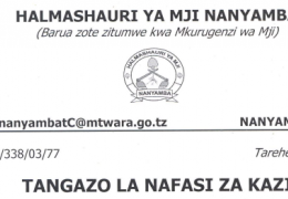 MKURUGENZI WA HALMASHAURI YA MJI NANYAMBA ANAWATANGAZIA WALIOORODHESHWA KWENYE TANGAZO HILI KUFIKA TAREHE...
