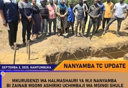 Mkurugenzi wa Halmashauri ya Mji Nanyamba, Bi. Zainabu Mgomi, ameshiriki zoezi la uchimbaji wa msingi kwa ajili ya ujenzi wa madarasa katika Shule ya Msingi Namtumbuka.