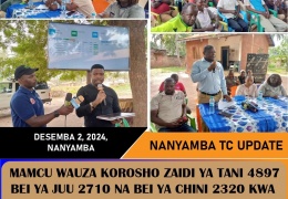 Chama Kikuu cha Ushirika cha Masasi-Mtwara Cooperative Union (MAMCU) leo tarehe 2/12/2024 wamefanya Mnada wa nane kijiji cha Mtimbwilimbwi kata ya Mtimbwilimbwi zaidi ya tani 4897 zimeuzwa.Katika mnad...