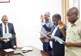 Msimamizi wa Uchaguzi Halmashauri ya Mji Nanyamba Mhandisi Mshamu Ali Munde wa kati akila kiapo mbele ya Hakimu Mfawidhi wa Mahakama ya Mtwara Mhe Lucas Mtimizi Jang'andu leo tarehe 17/9/2024....