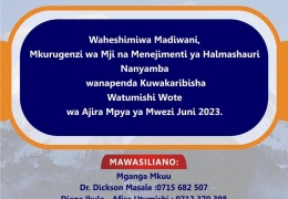 WAHESHIMIWA MADIWANI, MKURUGENZI WA MJI NA MENEJIMENTI YA HALMASHAURI NANYAMBA WANAPENDA KUWAKARIBISHA WATUMISHI WOTE WA AJIRA MPYA MWEZI JUNI 2023....