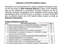 TANGAZO LA BADILIKO LA TAREHE YA KUITWA KWENYE USAILI