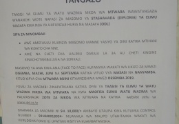 TANGAZO LA NAFASI ZA MASOMO ELIMU YA WATU WAZIMA NANYAMBA